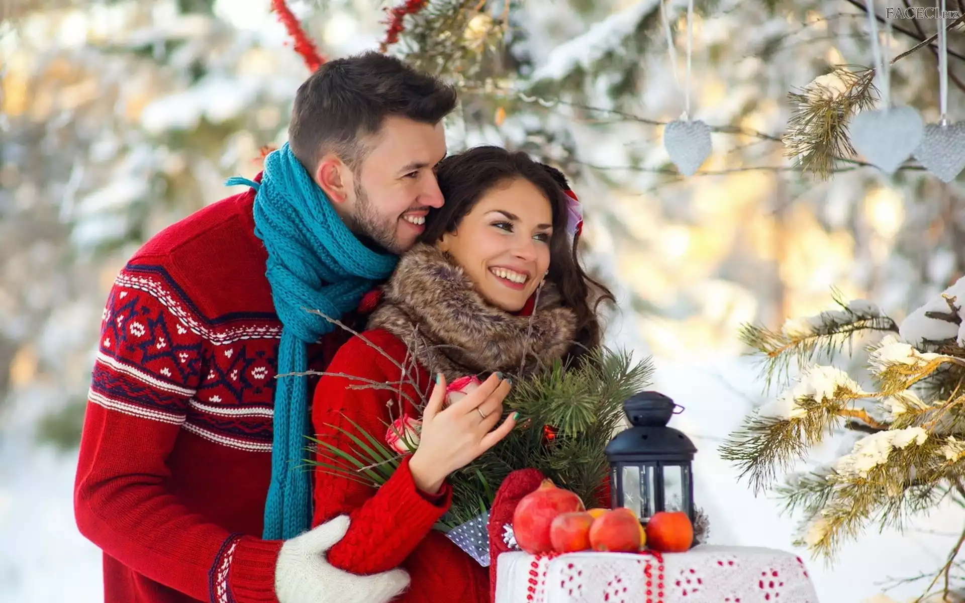 Lampion, Serduszka, Para, Radosna, Choinka - faceci.biz
